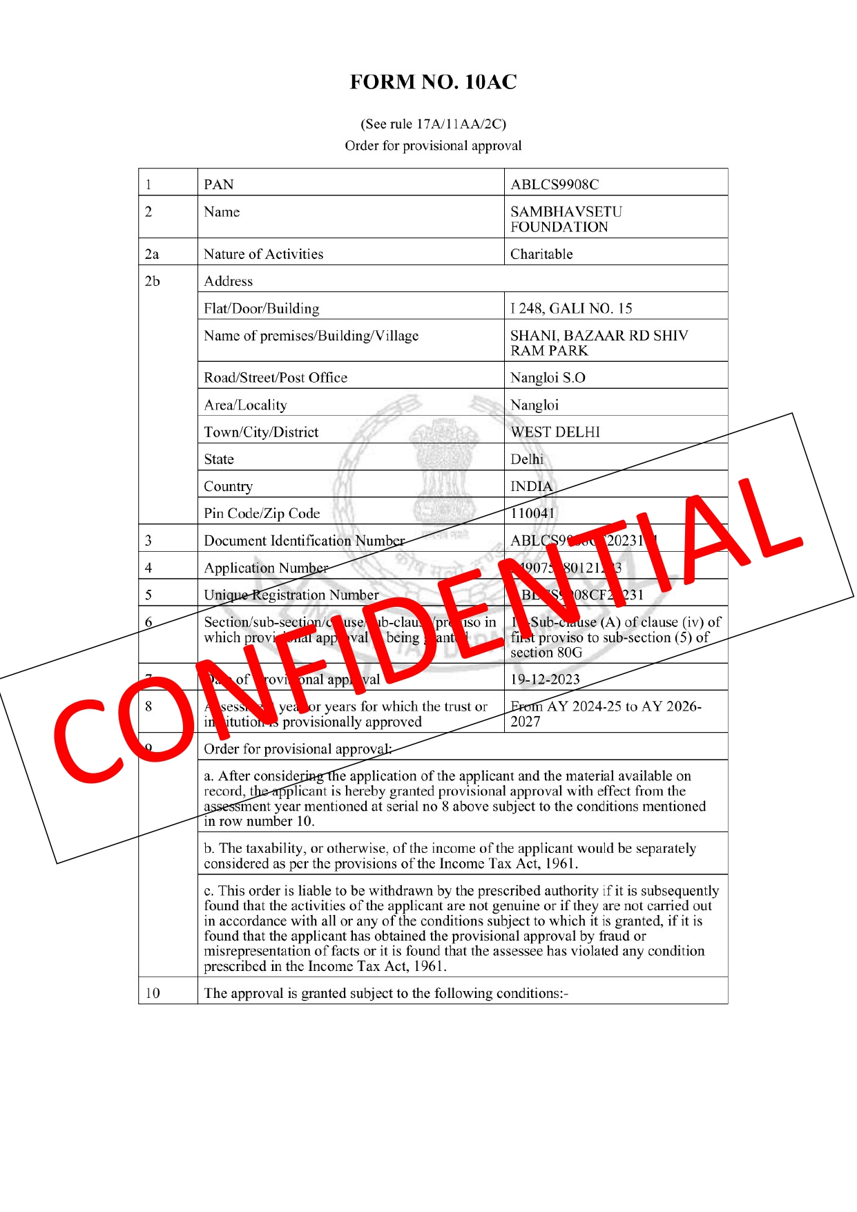 80 G Certificate